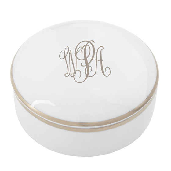 Ultra-White Signature Platinum Giftware With Monogram - Large Round Covered Box