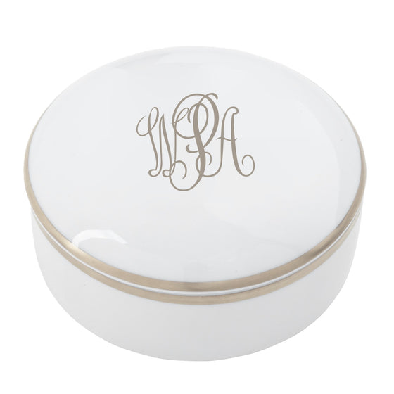 White Signature Platinum Giftware With Monogram - Large Round Covered Box